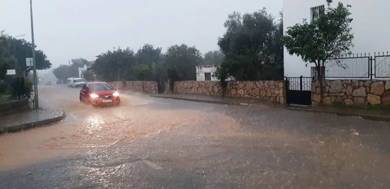 Muğla’nın Bodrum ilçesinde aniden bastıran sağanak yağmur cadde ve sokakları göle çevirdi.