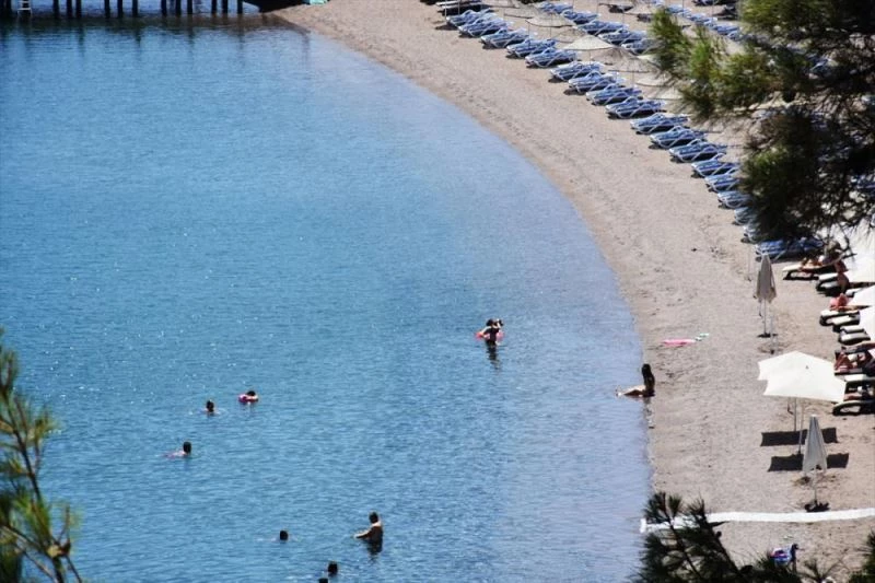 Marmaris'in İçmeler, Uzunyalı sahilleri ile Marmaris Belediyesi Halk Plajı'na gelen vatandaşlar, denize girip güneşlendi.