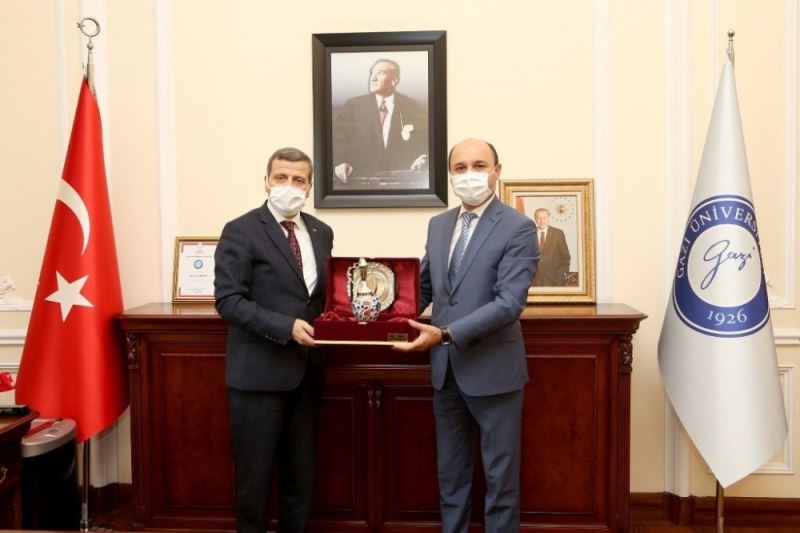 Türk Eğitim-Sen Genel Başkanı Talip Geylan, Gazi Üniversitesi Rektörlüğüne atanan Prof. Dr. Musa Yıldız’ı makamında ziyaret etti.