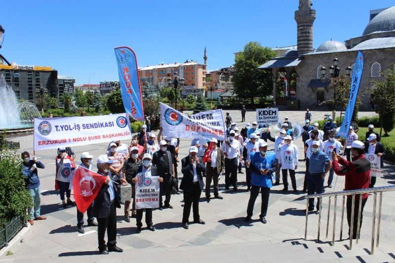 Demir-Yol İş Sendika Başkanı, Türk-İş Erzurum İl Temsilcisi Yusuf Gökcan, sendika temsilcileri ile birlikte Lala Paşa Cami Kent Meydanında yaptıkları açıklamada, “Bildiğiniz üzere son günlerde çalışma hayatında sıkıntılı bir durum yaşanıyor. Kıdem Tazminatı hakkımızla ilgili bazı düzenlemeler yapılmak isteniyor. İşsizlik Sigortası Fonu kesintileri artırılmak isteniyor. 25 yaş altı ve 50 yaş üstü çalışanlara daha esnek çalışma getiriliyor ve bu yolla kıdem ve ihbar tazminatı ortadan kaldırılıyor” dedi.