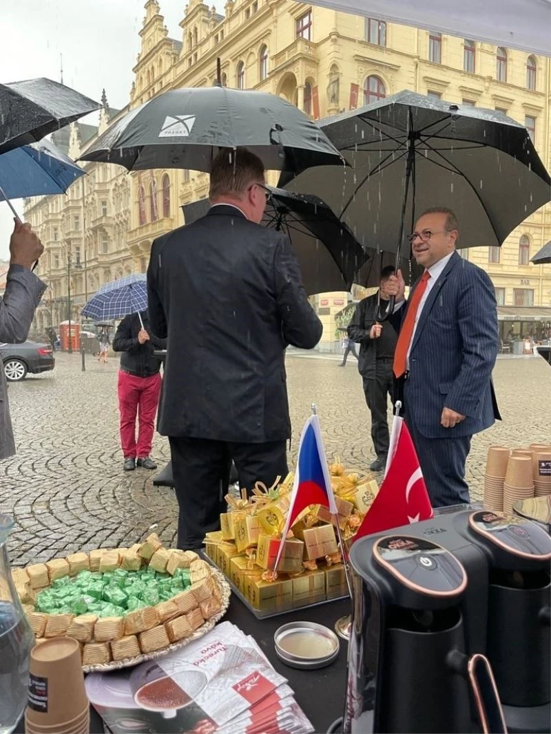 Çekya’nın başkenti Prag’ın en ünlü meydanlarından Namesti Republiky’de dağıtılan Türk kahvesi Çekya halkından da büyük ilgi gördü.