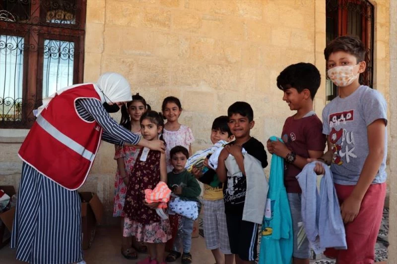 Türk Kızılay çalışanlarınca hazırlanan giysiler, daha önceden belirlenen 100 ihtiyaç sahibi çocuğa teslim edildi.