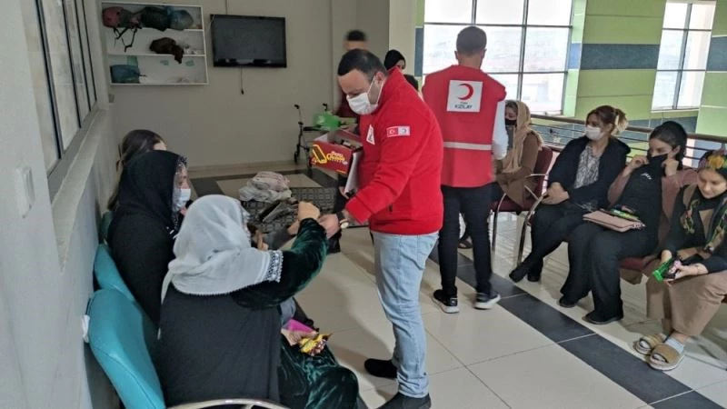 Görüşmelerin ardından Kızılay üyeleri, beraberinde getirdikleri gıdaları burada bulunan hasta ve yakınlarına dağıttı.