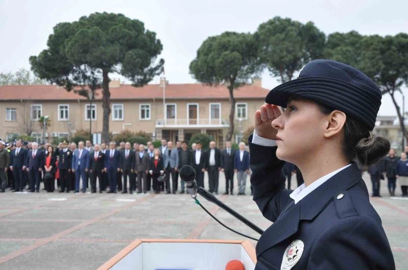 Çelenk sunma törenine Kaymakam Mehmet Kamil Sağlam, Belediye Başkanı Zeki Kayda, Belediye Başkan Yardımcısı Metin Durmaz, Cumhuriyet Başsavcısı Mustafa Balık, İlçe Emniyet Müdürü Burhan Demirkıran, siyasi parti temsilcileri, kooperatif ve esnaf odası başkanları ile polisler katıldı.