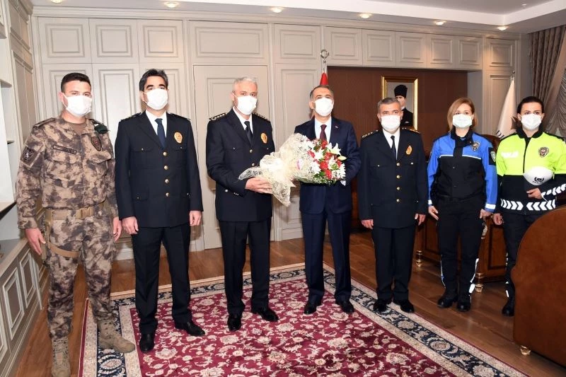 İl Emniyet Müdürü İbrahim Ergüder ve teşkilat mensuplarının ziyaretinden duyduğu memnuniyeti dile getiren Vali Mahmut Çuhadar, Türk Polis Teşkilatının kuruluşunun 176. yıldönümünü kutladı.