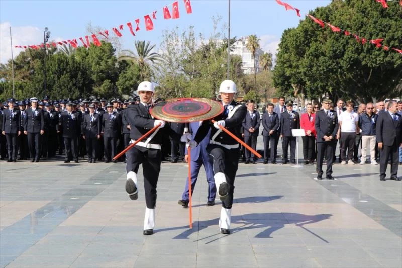 Antalya'da Cumhuriyet Meydanı'ndeki törende, Antalya İl Emniyet Müdürlüğü, Türkiye Emekli Emniyet Müdürleri Sosyal Yardımlaşma ve Dayanışma Derneği, Türkiye Polis Emeklileri Sosyal Yardım Derneği, Emniyet Teşkilatı Vazife Malulü ve Şehit Aileleri Vakfı, Antalya Şehit Aileleri ve Gazileri Derneği Atatürk Anıtı'na çelenk sunuldu.