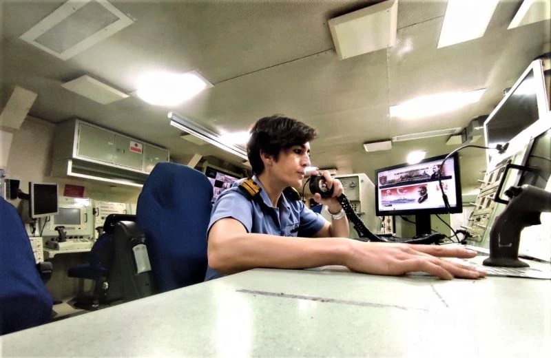 TCG Heybeliada Gemisi’nde Savaş Harekat Bölüm Amiri olarak görev yaptığını ifade eden Deniz Yüzbaşı İrem Köksal, “Savaş Harekat Bölümünde idari ve cari işleri icra etmekle beraber, geminin eğitim faaliyetleri ile harbe hazırlık seviyesini takip etmek, idamesini sağlamak, gerginlik, harp durumunda oluşturulacak harekat kontrol merkezini işletmekten, gemi komutanına karşı sorumluyum. Savaş Harekat Merkezi, gerginlik ve harp durumunda geminin yönetildiği ve karar verildiği merkez olması sebebiyle çok önemlidir. Gerginlik, harp durumunda tehdidi bertaraf etmek ve geminin bekasını sağlamak üzere, gemi savaş durumuna, personel savaş yerlerine alınır. Savaş yerleri donatıldığında 4 farklı kontrol merkezi tesis edilir. Bunlar; komuta kontrol, harekat kontrol, gemi kontrol ve hasan kontrol merkezleridir. Komuta kontrol merkezi, komutanınınız tarafından yönetilmekte ve komutanımız bu görevi savaş harekat merkezinden icra etmektedir. Bu kontrol merkezlerinden elde edilen tüm bilgiler, komutanın en doğru kararı, zamanında verebilmesi maksadıyla savaş harekat merkezine rapor edilir. Kontrol merkezlerinde elde edilen tüm bilgiler, savaş harekat merkezinde bulunan ekranlar vasıtasıyla işlenir ve komutanımız önceliklerini belirleyerek, kararını verir” dedi.