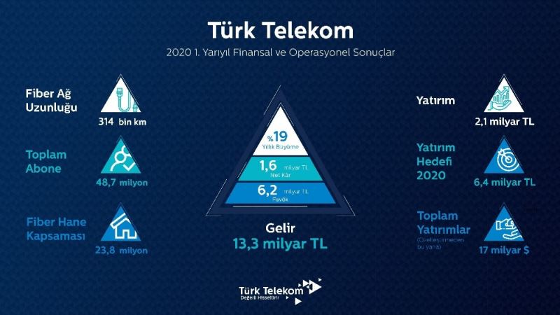 Yılın ilk yarısında 878 bin net abone kazanan Türk Telekom, toplam abone sayısını 48,7 milyona taşıdı. Sabit genişbant internet aboneleri, yılın ilk yarısında 857 bin net abone kazanımı ile halka arzdan bu yana en yüksek ilk yarı abone artışını kaydederek toplam 12,2 milyona yükseldi. Sabit genişbant ARPU ikinci çeyrekte, 2011 yılından bu yana en yüksek yıllık büyümeyle yüzde 14,4 arttı. Fiber abone sayısı yılın ilk 6 ayında, yıllık yüzde 26 artış ile 4,8 milyona ulaştı. Mobil abone sayısı 22,8 milyon olurken sabit seste, yeni 333 bin net abone ile 2008 yılındaki halka arzdan bu yana en yüksek altı aylık net abone kazanımı kaydedildi.
