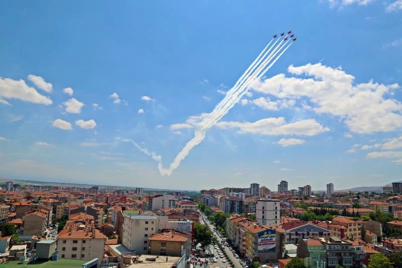 Türk Hava Kuvvetlerinin akrobasi timi ’Türk Yıldızları’, Niğde semalarında selamlama uçuşu gerçekleştirdi.