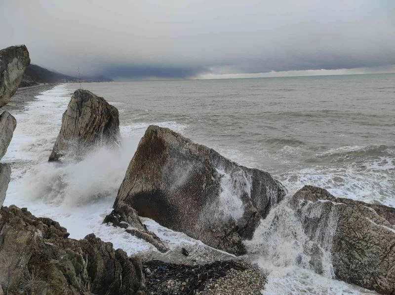 Kıyıya vuran 3 metre boyundaki dev dalgalarla birlikte Türkeli ve Güzelkent sahilleri ağaç parçaları ve çöpler ile doldu.