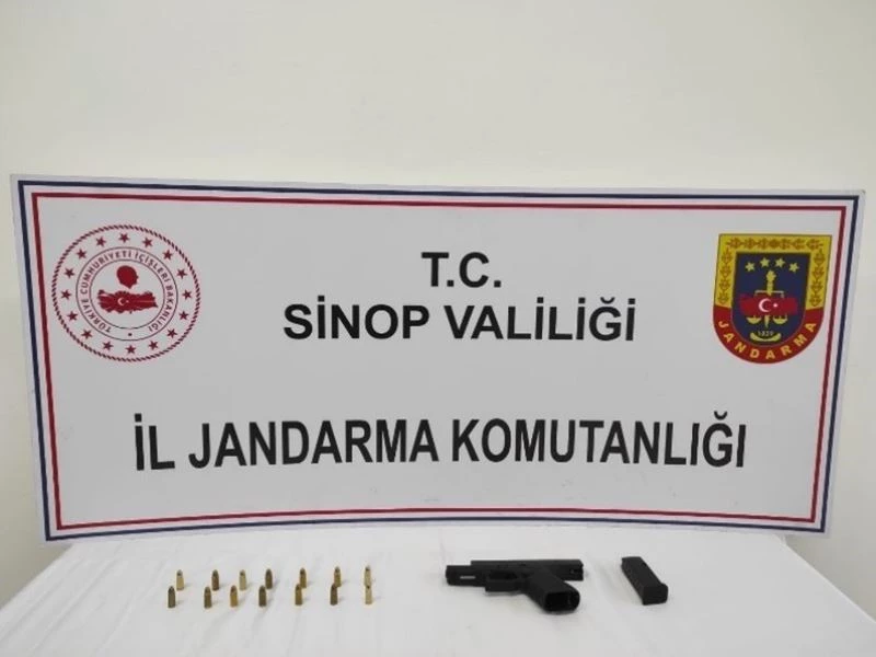 Sinop’un Türkeli ilçesinde, devriye esnasında yapılan kontrolde ruhsatsız tabanca ve tabancaya ait fişek ele geçirildi.