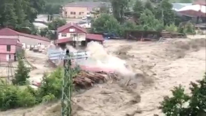 Sinop’un Türkeli ilçesinde 11 Ağustos’ta meydana gelen sel felaketine dair yeni görüntüler ortaya çıktı. İlçeye bağlı Düzler köyü Yılanlık mevkisinde bulunan kereste fabrikasının sel nedeniyle yıkılma anı kameraya yansıdı.