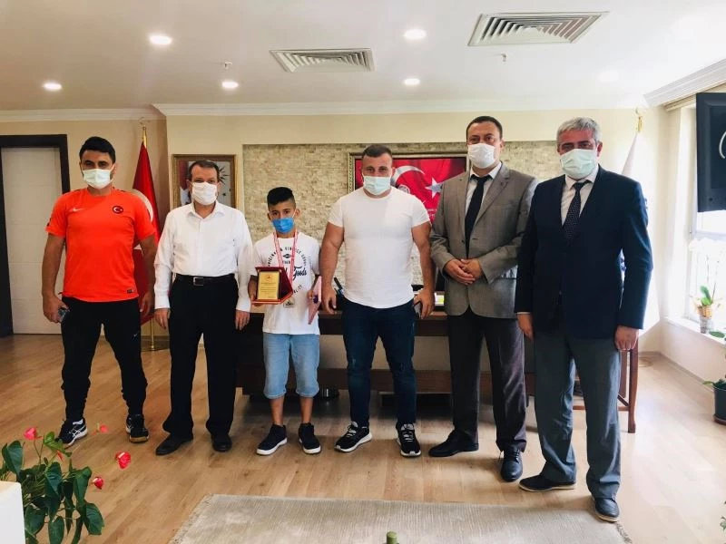 Antalya’da gerçekleştirilen 11-13 yaş minikler Türkiye Güreş Şampiyonasında Türkiye ikincisi olan Mustafa Şeref Özgül, Çan Kaymakamı Mustafa Gürdal tarafından ödüllendirildi.
