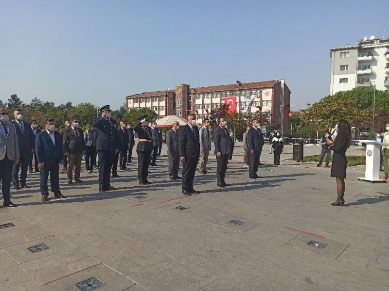 Kaymakamlık tarafından belirlenen 29 Ekim Cumhuriyet Bayramı kutlama programı kapsamında 15 Temmuz Demokrasi Meydanı’nda Atatürk Anıtı’na Kaymakam Cevdet Ertürkmen ve Belediye Başkanı Hamit Kılıç tarafından çelenk konuldu. Çelenk sunumunun ardından saygı duruşunda bulunulup İstiklal Marşı okundu. Pandemi önlemleri kapsamında düzenlenen törene Cumhuriyet Başsavcısı Olcay Aksoy, İlçe Emniyet Müdürü Süleyman Gökay Gökdoğan, İlçe Jandarma Komutanı Üsteğmen Fatih Özer, siyasi parti ve sivil toplum kuruluşları temsilcileri katıldı.