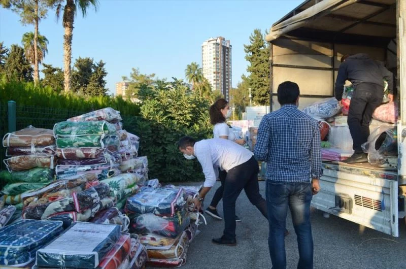 MERSIN (AA) - Mersin'in Mezitli ilçesindeki hayirseverler, Izmir'e depremzedelerin kullanmasi için yardim malzemeleri bagisladi.