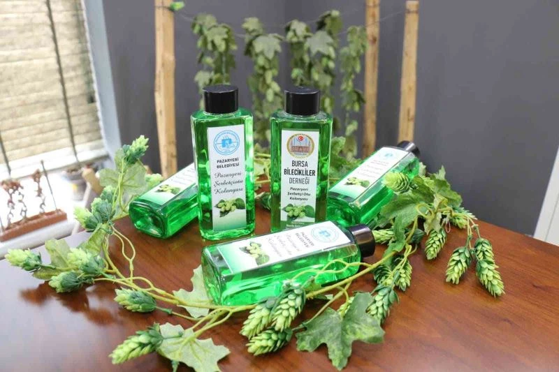 Pazaryeri ilçesinde 3 bin dekar alanda üretilen, 2 bin ton civarında bir rekolte alınan ve genellikle ilaç ve içecek sanayisinde kullanılan şerbetçiotunun kolonyası yapıldı. Kolonyanın kokusun çok güzel olduğunu anlatan Pazaryeri Belediye Başkanı Zekiye Tekin, "Şerbetçiotu kolonyamız hazır. İlçemize ve şerbetçiotu üreticilerimize hayırlı olsun. Bursa Bilecikliler Derneğimiz işbirliğinde hazırladığımız kolonyanın kokusu çok güzel oldu çok" dedi.