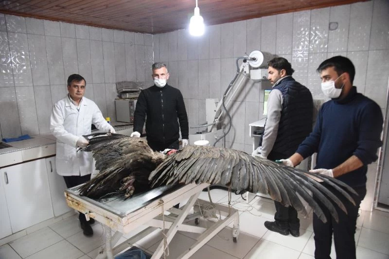 Sokak hayvanları için birbirinden önemli hizmetleri ortaya koyan Sokak Hayvanları Tedavi ve Rehabilitasyon Merkezi, bu kez yaralı kara akbabayı tedavi için ağırladı. Veteriner İşleri Müdürü Nedret Avcı, tedavi ve rehabilitasyon merkezinde röntgen filmi çekilen yaralı kara akbabanın kanatlarında kırık tespit ettiklerini belirterek, şunları söyledi: