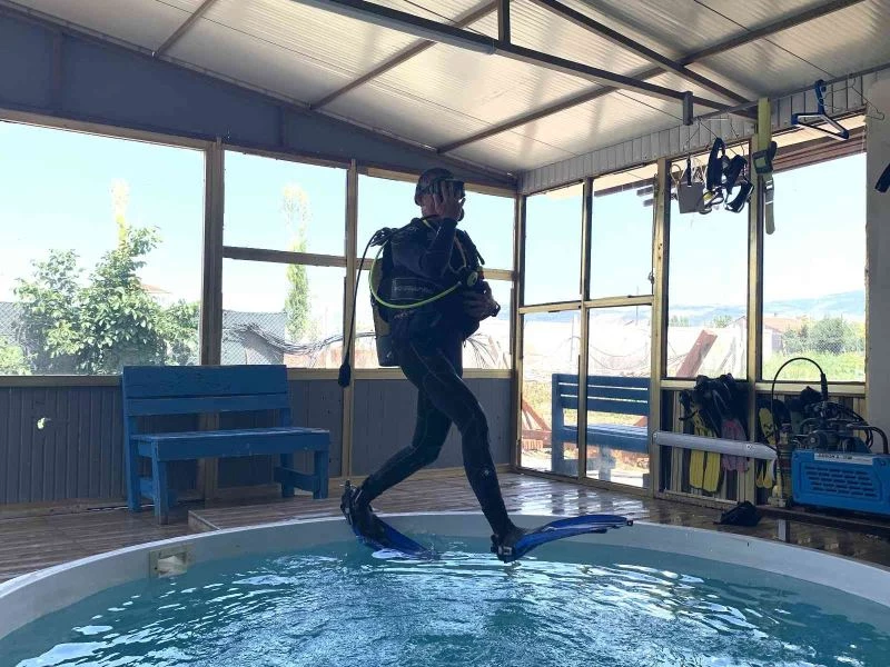 Türkiye’de sadece kendisinin ’denizsiz dalış’ eğitimi verdiğini öne süren Ercan Dülger, denizi olmayan Eskişehir’de havuz içerisinde dalmayı öğretiyor.