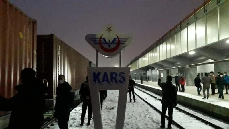 Türkiye’den Çin’e doğru hareket eden ilk ihracat treni 4 Aralık 2020 tarihinde Ulaştırma ve Altyapı Bakanı Adil Karaismailoğlu tarafından İstanbul’dan uğurlanmıştı. 2 kıta, 2 deniz ve 5 ülke geçerek yükünü 12 günde Çin’e ulaştırması planlanan tren bugün akşam saatlerinde yurt dışına çıkmak için son durak olan Kars Tren Garı’na geldi.