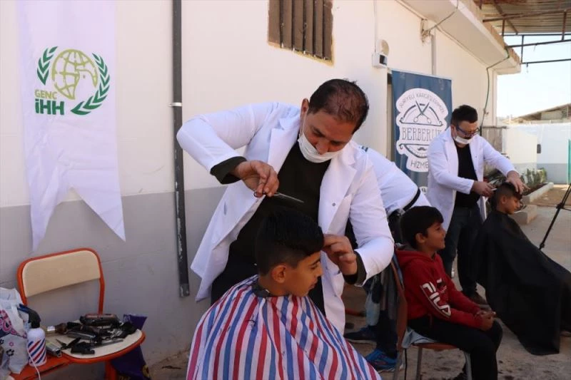 Türkiye'den giden gönüllü berberler İdlib'deki 110 yetimi tıraş etti
