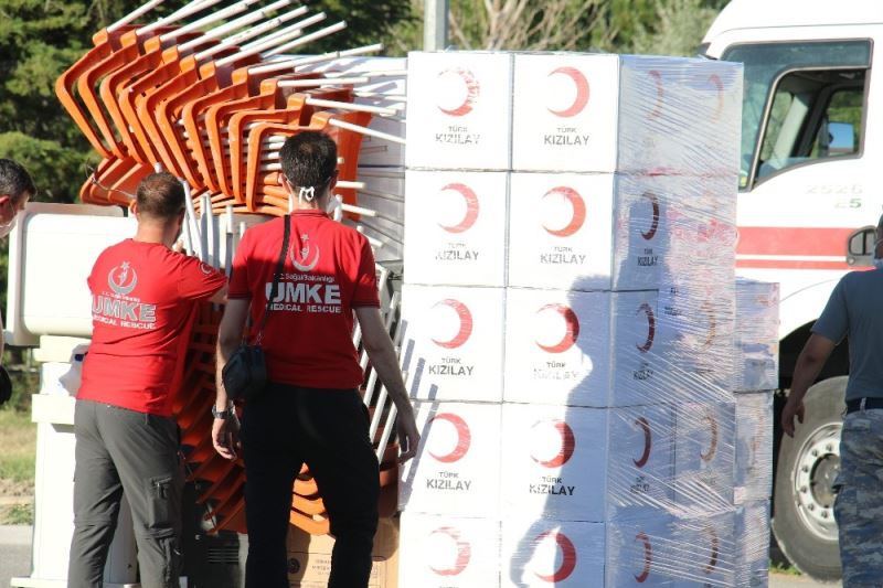 “Bin adet koruyucu tulum, 100 adet koruyucu gözlük 10 bin adet 3 katlı maske, 20 bin adet pudrasız vinil eldiven, bin 152 adet kan torbası, 5 adet acil müdahale çadırı, 2 adet jeneratör, 6 adet masa, 10 adet sandalye, 20 uyku tulumu, 20 adet battaniye, 3 adet mazot bidonu, 16 adet katlanabilir sedye, 2 adet travma tahtası, 1 adet kombinasyon sedye, 5 adet UMKE çantası, 2 adet oksijen tüpü, 2 adet tedavi arabası, 2 adet cerrahi aspiratör, 20 adet plastik sandık.”