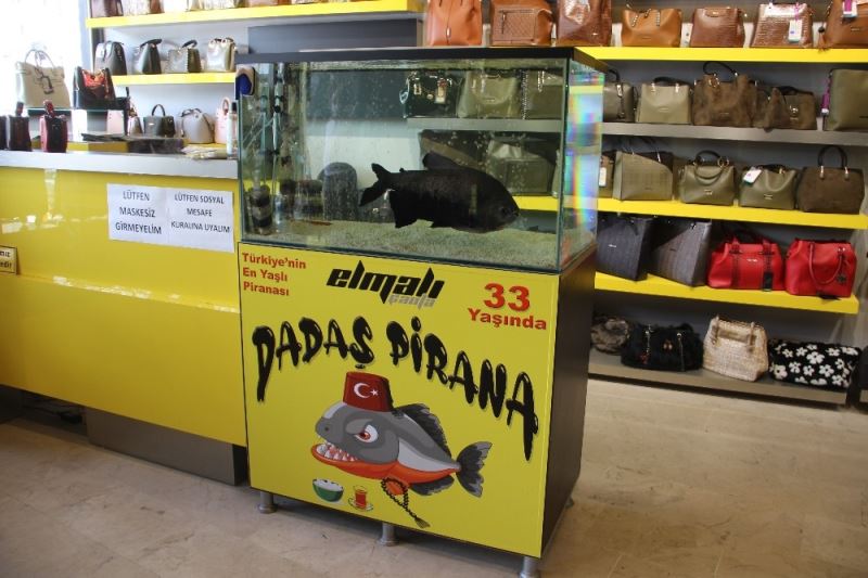 Yakutiye ilçesi Lalapaşa Caddesi’nde mütevazi bir çantacı dükkanı olan bir vatandaş, kendisine hediye edilen piranaya özel ilgi gösteriyor. 4 kilo ağırlığında ve 60 santimetre boyunda olan 33 yaşındaki pirana görenleri şaşırtıyor. Özel yaptırılan akvaryumda özel bir yemle beslenen piranaya ayda bir kez de et veriliyor. Dükkana gelen vatandaşlar ise alışverişi unutup piranaya yoğun ilgi gösteriyor. ’Dadaş Pirana’ isimli balık Türkiye’nin en yaşlı piranası olarak da biliniyor.