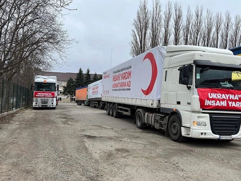 Türkiye’nin Ukrayna’ya gönderdiği yardım tırlarının ulaştığını bildiren Türkiye’nin Kiev Büyükelçiliği tarafından yapılan açıklamada, “Ülkemizden yola çıkan ve yardım malzemesi taşıyan 13 tır bugün Ukrayna’ya ulaştı” denildi.