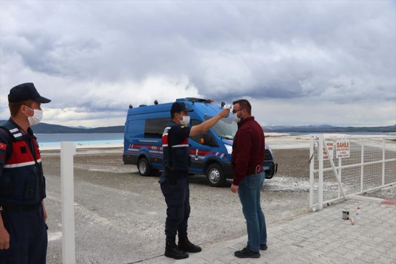 Alani sürekli kontrol eden Ilçe Jandarma Komutanligi ekipleri ziyaretçileri sosyal mesafeyi korumalari ve maske takmalari konusunda uyardi.