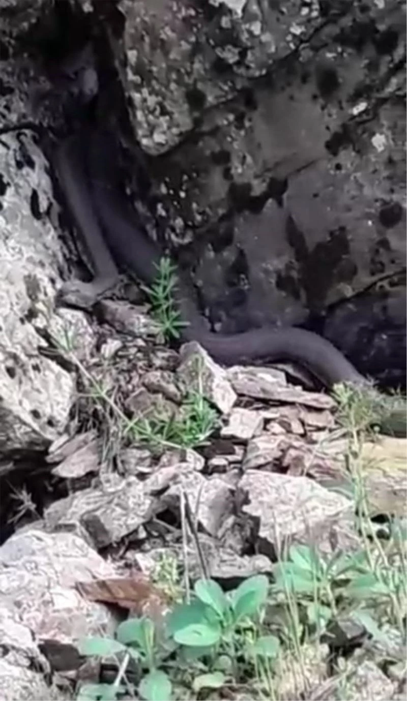 Muş’un yüksek kesimlerinde bir vatandaş tarafından Türkiye’nin zehri en ölümcül ve en büyük yılanı koca engerekler görüntülendi.