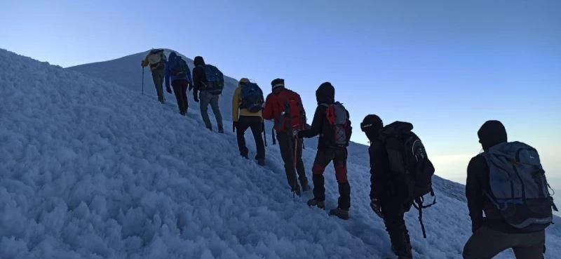 Vadi Doğa Sporları Kulübü üyeleri, 5 bin 137 metre yüksekliğiyle ‘Türkiye’nin Çatısı’ olarak adlandırılan Ağrı Dağı’nda doğum günü kutladı.