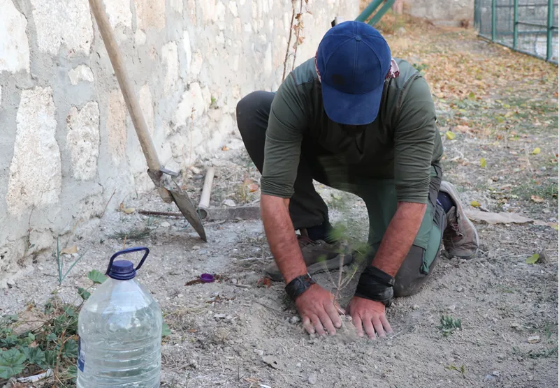 Burdur'a ulaşan Özer, Burdur Lisesi bahçesine fidan dikti.