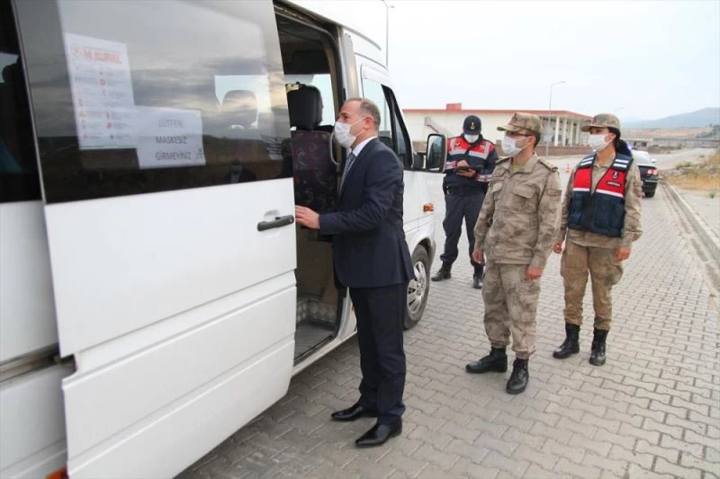 Jandarma ekipleri, denetimlerde sürücülerin evrak kontrolünü yapti, servis araci kullananlarin maske, sosyal mesafe ve hijyen kurallarina uyup uymadigini kontrol etti.