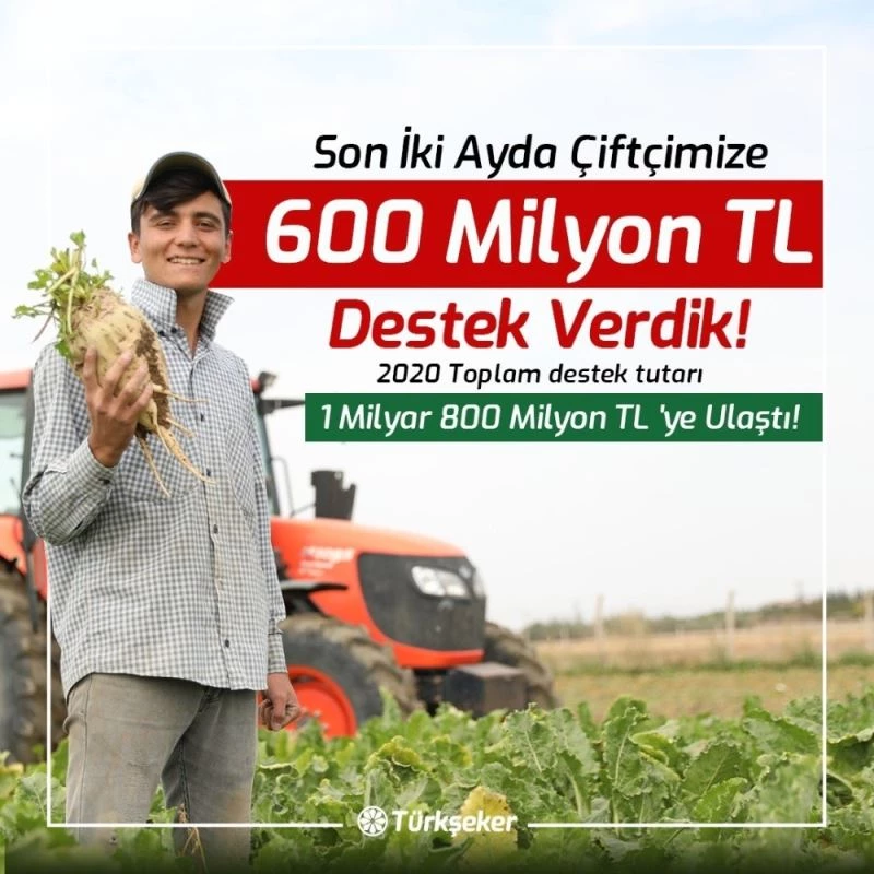 Pandemi süreci ile birlikte hububat, bakliyat, domates, patates ve sera ürünleri başta olmak üzere birçok tarımsal üründe çiftçilere destek olamaya başlayan ve Türkiye’nin şeker sektöründeki en büyük şirketi olan Türk Şeker, son iki ayda yaptığı 600 milyon liralık destek ile çiftçilerin rahat bir nefes almasına yardımcı oldu.