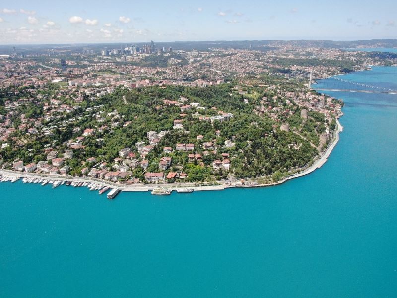 Turkuaza bürünen İstanbul Boğazı havadan görüntülendi