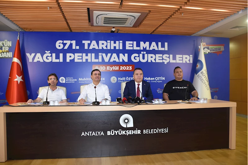 Büyükşehir Belediyesi hizmet binasındaki toplantıda konuşan Başkan Böcek, 671. Tarihi Elmalı Yağlı Güreşleri'nin 8-10 Eylül tarihlerinde gerçekleştirileceğini hatırlattı.