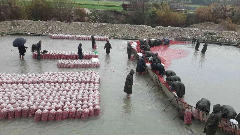 Türkiye’nin turp ihtiyacının yüzde 80’inin karşılandığı Osmaniye’nin Kadirli ilçesinde tarladan hasat yapılan turplar, çoğunluğunu kadınların oluşturduğu işçiler tarafından Savrun Çayı’nda yıkanarak temizlenip paketlendikten sonra Türkiye’nin dört bir yanına gönderiliyor.