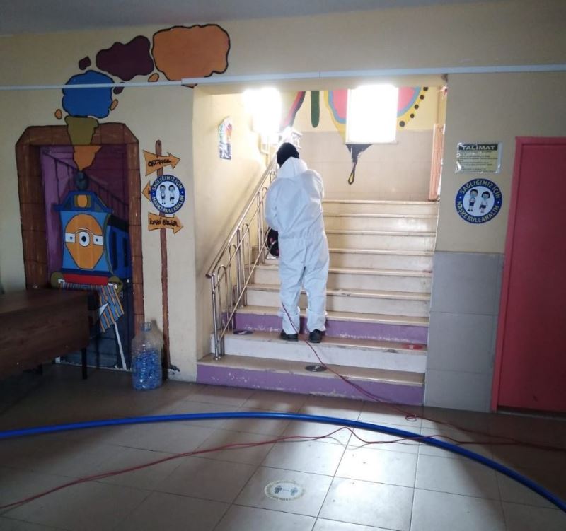 Van’ın merkez Tuşba Belediyesi, 15 Şubat’ta yüz yüze eğitimin başlayacağı kırsal mahallelerde bulunan okullar ile bağımsız anaokullarını yeni tip korona virüs salgını ile mücadele kapsamında dezenfekte ediyor.