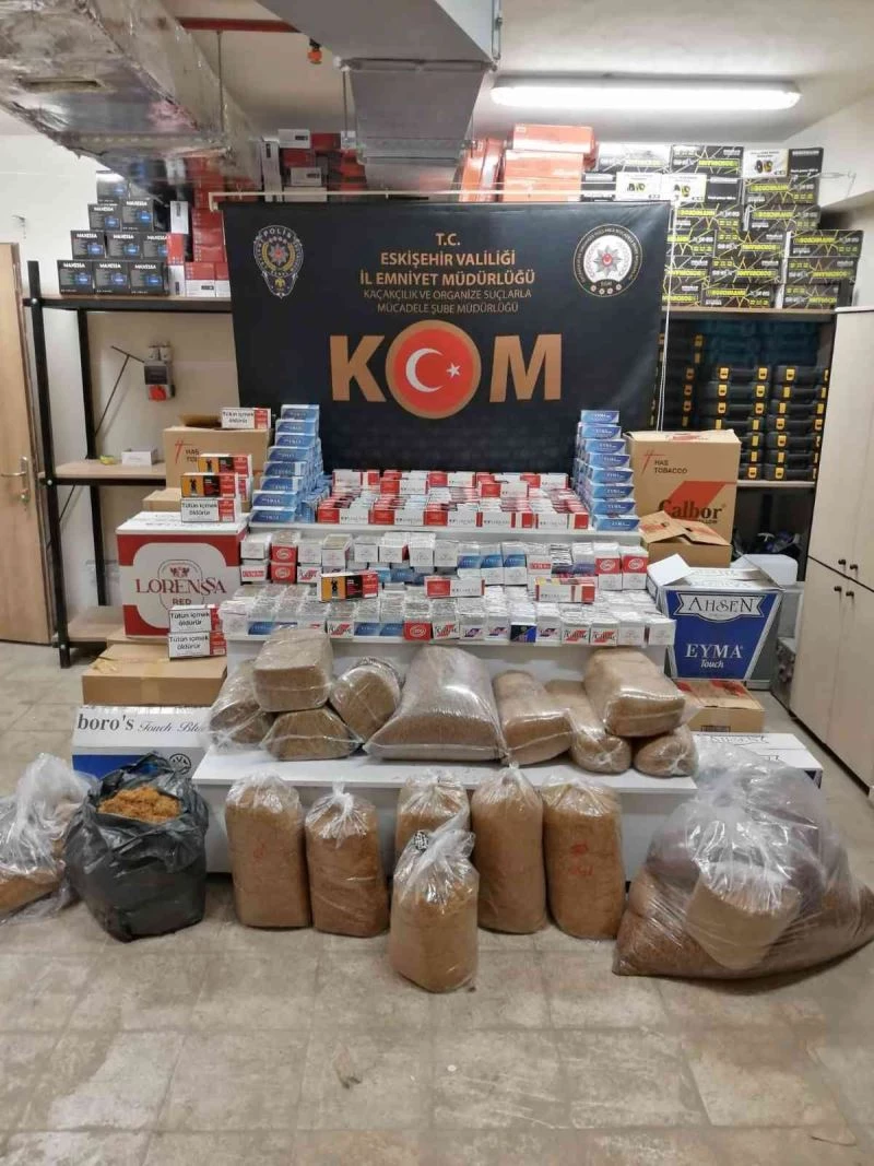 Edinilen bilgilere göre, Eskişehir Cumhuriyet Başsavcılığı koordinesinde Kaçakçılık ve Organize Suçlarla Mücadele Şube Müdürlüğü (KOM) ekiplerince çalışma yapıldı. Vergi kaybının önlenmesi, haksız kazancın engellenmesi ve halk sağlığının korunması amacı ile kaçak tütün ve tütün mamullerini piyasaya sürmeye çalışan şahıslara yönelik 4 farklı adrese yapılan operasyonda, 59 bin 240 dal sarılmış sigara, 106 bin 600 dal boş makaron ve 127 kilogram tütün ele geçirildi.