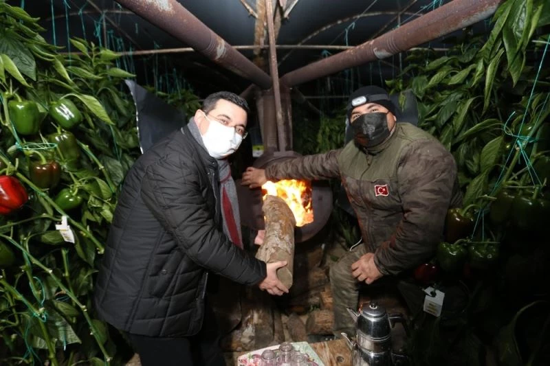 Kepez Belediye Başkanı Hakan Tütüncü, Meteroloji Bölge Müdürlüğü’nün “zirai don” uyarısı yapması üzerine geceyi soğuğa karşı ürünlerini korumak için seralarından ayrılmayan örtü altı sebze üreticileriyle geçirdi.