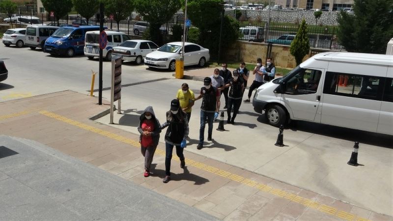 Uyuşturucu madde ticareti yaptıkları öne sürülen Y.Ü.(32), A.E.(55), A.Ö. (38), R.Y. (36), M.Ç. (47) adlı 1’i kadın 5 zanlı gözaltına alınarak adliyeye sevk edildi.