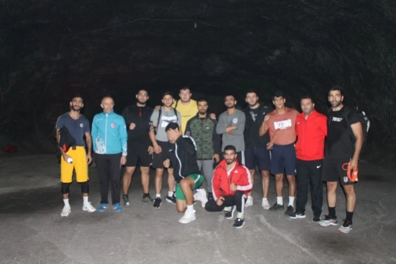 Çankırı’da kampta olan Türkiye Boks Milli Takımı kondisyon ve performans araştırması için Tuz Mağarası’nda antrenmanlara başlanıldı.