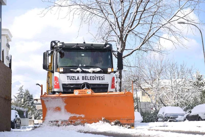 Tuzla Belediyesi ekipleri, 63 araç ve 450 personel ile karla mücadele çalışmalarını sürdürüyor