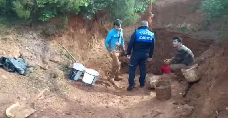 Tuzla’da kaçak kazı yapan defineciler suçüstü yakalandı