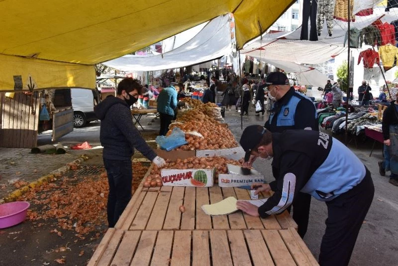 İçişleri Bakanlığı’nın 81 il valiliğine gönderdiği ’Covid-19 Denetimleri’ konulu genelge kapsamında, Tuzla Belediyesi Zabıta Müdürlüğü’ne bağlı ekipler Şifa Mahallesi’nde kurulan semt pazarını denetlediler. Denetimlerde kurallara uymayan esnafa 392’şer Türk Lirası para cezası kesildi.