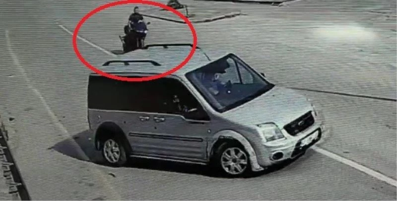 Öte yandan kaza anı ise bir iş yerinin güvenlik kameralarına yansıdı. Görüntülerde cadde üzerinde seyir halinde ilerleyen motosiklet, U dönüşü yapmak için manevra yapan hafif ticari araca çarpıyor. Çarpmanın etkisiyle motosikletten fırlayan sürücü, hafif ticari aracın gövdesine çarparak yere düşüyor.