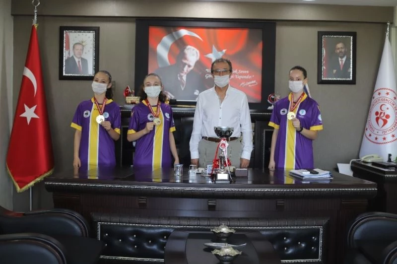 Türkiye Kulüpler Karate Şampiyonası Sakarya’nın ev sahipliğinde 27 ile 30 Ağustos tarihleri arasında düzenlendi. Pandemi tedbirlerinin üst düzey alındığı şampiyona, fiziksel temas gerektirmeyen Kata dalında gerçekleşti. Denizli’yi temsil eden Karate İhtisas Spor Kulübü, 4 gün süren müsabakalar sonunda Ümit-Genç Bayanlar Takım Kata kategorisinde Türkiye Şampiyonu oldu. Şampiyon takımın sporcuları Damla Su Türemen, Peri Koyuncu ve Aslı Başak Pehlivan ile Antrenör İhsan Kaya, şampiyonluk sürecinde yaşadıklarını ve yeni hedeflerini Gençlik ve Spor İl Müdürü Ahmet İbanoğlu’na anlattı. Takımın en tecrübelisi Damla Su Türemen, pandemi dolayısıyla üç ay boyunca antrenörlerinin verdiği program doğrultusunda evde çalışmak zorunda kaldıklarını, toplu antrenmanlara ancak Haziran ayından itibaren başladıklarını söyledi. Peri Koyuncu ve Aslı Başak Pehlivan ise takım olmanın verdiği çalışma disipliniyle kendilerine şampiyonluk hedefi koyduklarını, bu süreçte tam bir uyumla çok çalıştıklarını ve neticesinde şampiyonluğu hak ettiklerini söyledi.