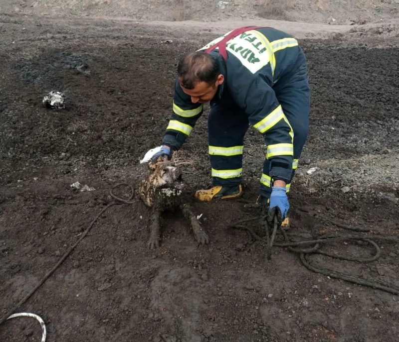 Adıyaman’ın eski çöplük alanında balçıkta mahsur kalan 3 köpek itfaiye ekipleri tarafından kurtarıldı.