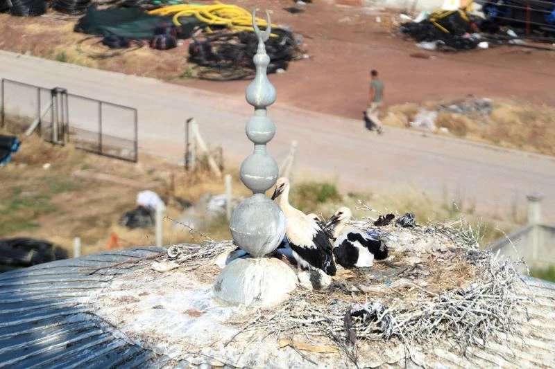 Üç yıldır aynı caminin kubbesinde yavrularını büyütüp uçuruyorlar