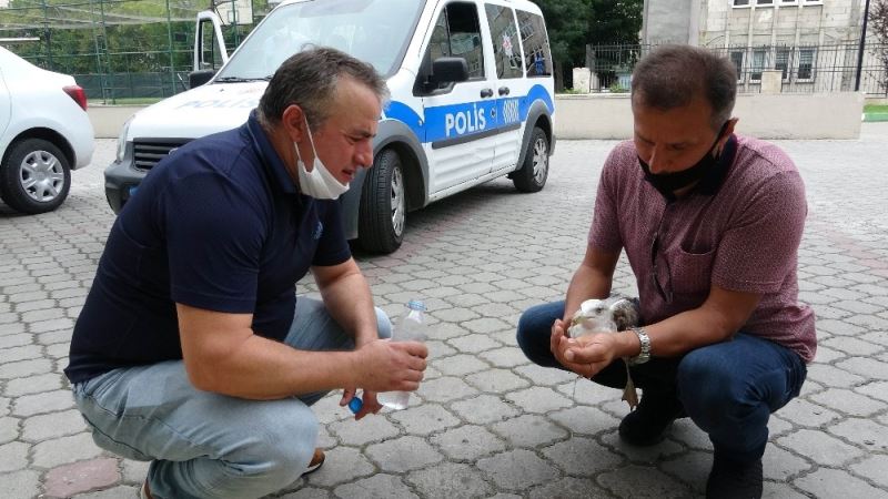 Samsun’da uçamayan ve susuzluktan bitkin hale düşen martıya polisler şefkat gösterip elleriyle su içirdi.