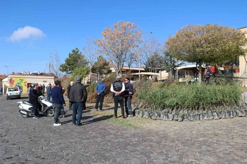 Uçhisar Belediye Başkanlığı tarafından pazar yerinde ücretsiz olarak dağıtılan aşılı meyve fidanlarına akın eden vatandaşlar aldıkları meyve fidanlarını toprakla buluşturdu.
